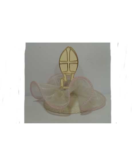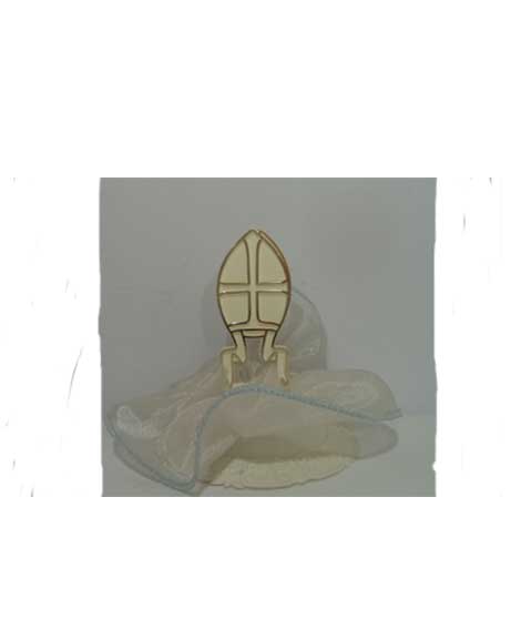 Alzatina cresima per decorare una torta riguardante questo tema. Con il velo bordato disponibile in due colori celeste o rosa a seconda se è per maschi o femmine. Realizzata in plastica e naturalmente tulle sulla base.