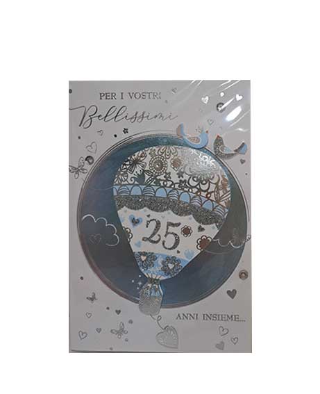 Scritta all’interno: Auguri di ancora tanta, tanta, tanta felicità! Felici nozze s’argento