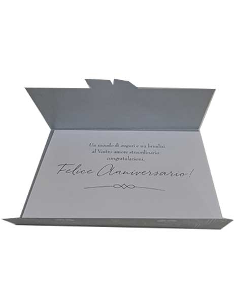 Scritta all’interno: Un mondo di auguri e un brindisi al Vostro amore straordinario. congratulazioni, Felice Anniversario!