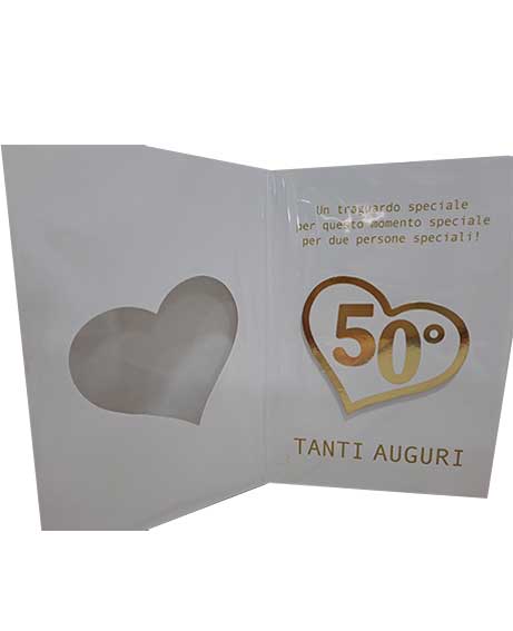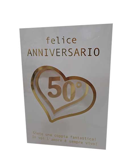 Scritta all’interno: Un traguardo speciale per questo momento speciale per due persone speciali! 50° Tanti auguri