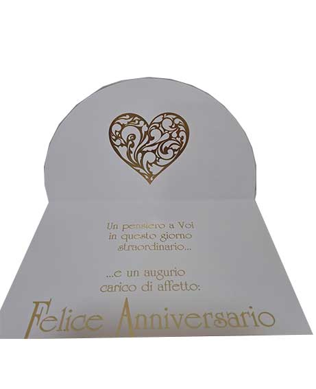 Scritta all’interno: Un pensiero a voi in questo giorno straordinario… … e un augurio carico di affetto: Felice Anniversario