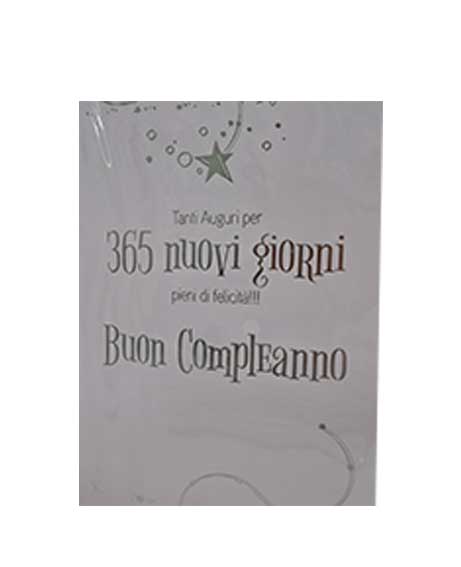 Scritta all’interno: Tanti auguri per 365 nuovi giorni pieni di felicità!!! Buon compleanno