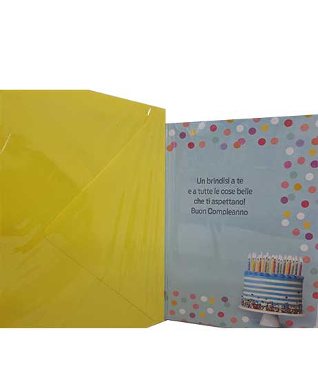 Scritta all’interno: Un brindisi a te e a tutte le cose belle che ti aspettano! Buon Compleanno