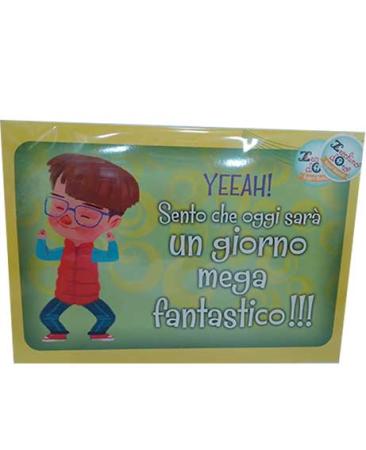 Scritta davanti: Yeeah! Sento che oggi sarà un giorno mega fantastico!!!