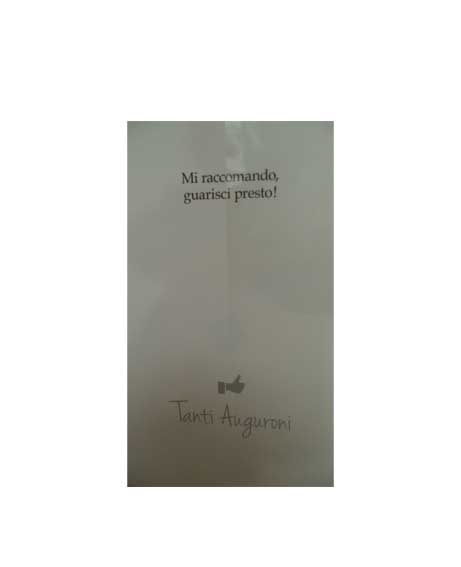 Scritta all’interno: Mi raccomando, guarisci presto! Tanti Auguroni