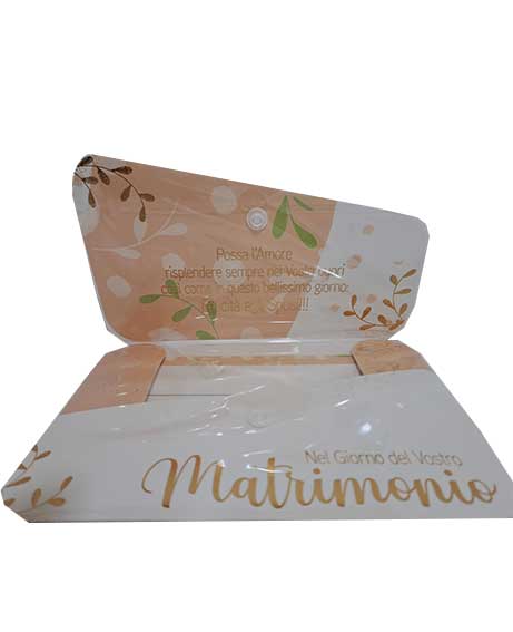 Scritta all’interno: Possa l’Amore risplendere sempre nei Vostri cuori così come in questo bellissimo giorno Felicità agli Sposi!!!