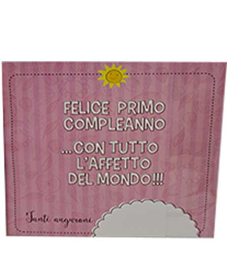 Scritta all’interno: Felice primo compleanno…con tutto l’affetto del mondo!!!  Tanti auguroni