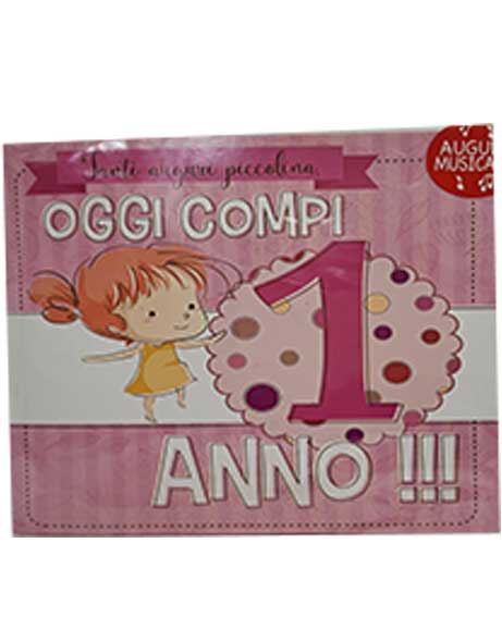 Scritta davanti: Tanti auguri piccolina, oggi compi 1 anno!!!