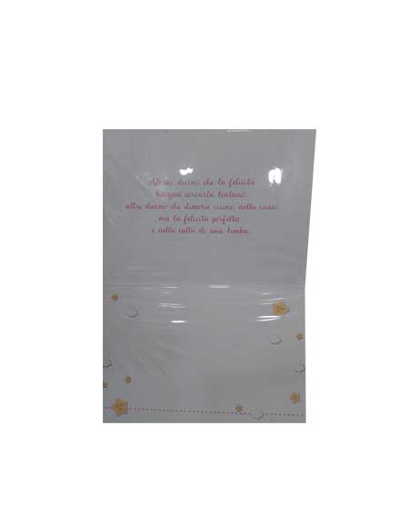 Scritta all’interno: Alcuni dicono che la felicità bisogna cercarla lontana: altri dicono che dimora vicino, nella casa; ma la felicità perfetta è nella culla di una bimba.