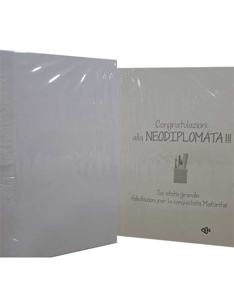 Scritta all’interno: Congratulazioni alla neodiplomatita!!! Sei stata grande: felicitazioni per la conquistata Maturità!