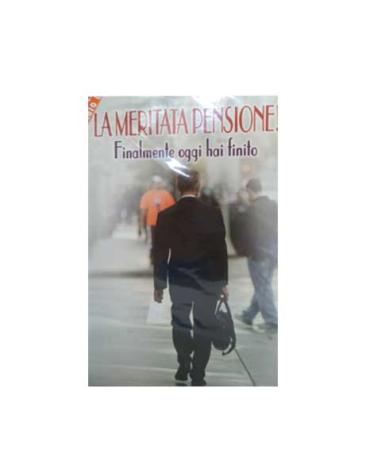Scritta davanti: La meritata pensione! Finalmente oggi hai finito