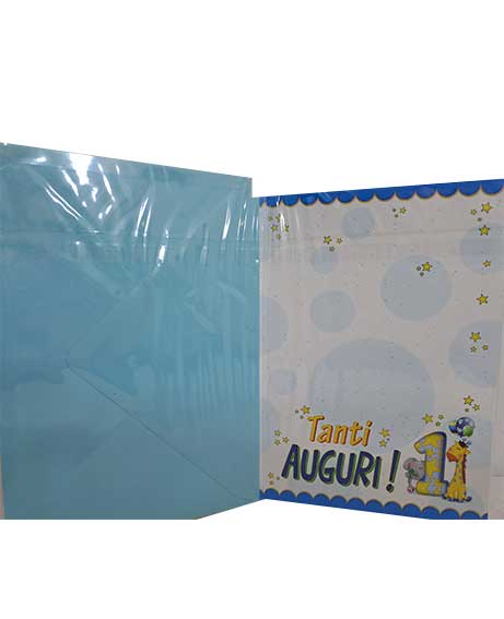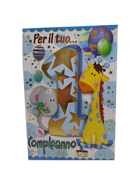 Biglietto Primo Compleanno con giraffa completo di busta.