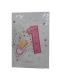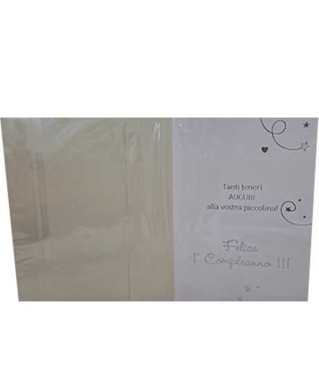 Scritta all’interno: Tanti teneri auguri alla vostra piccolina! Felice 1° compleanno!!!