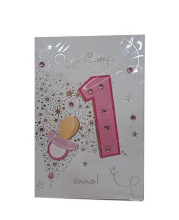 Biglietto Primo Compleanno paillettes completo di busta.