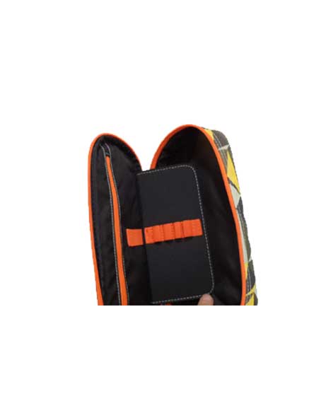 Bustina attrezzata Seven adatta a mettere tutta la cancelleria per la scuola. Bellissima la fantasia geometrica.