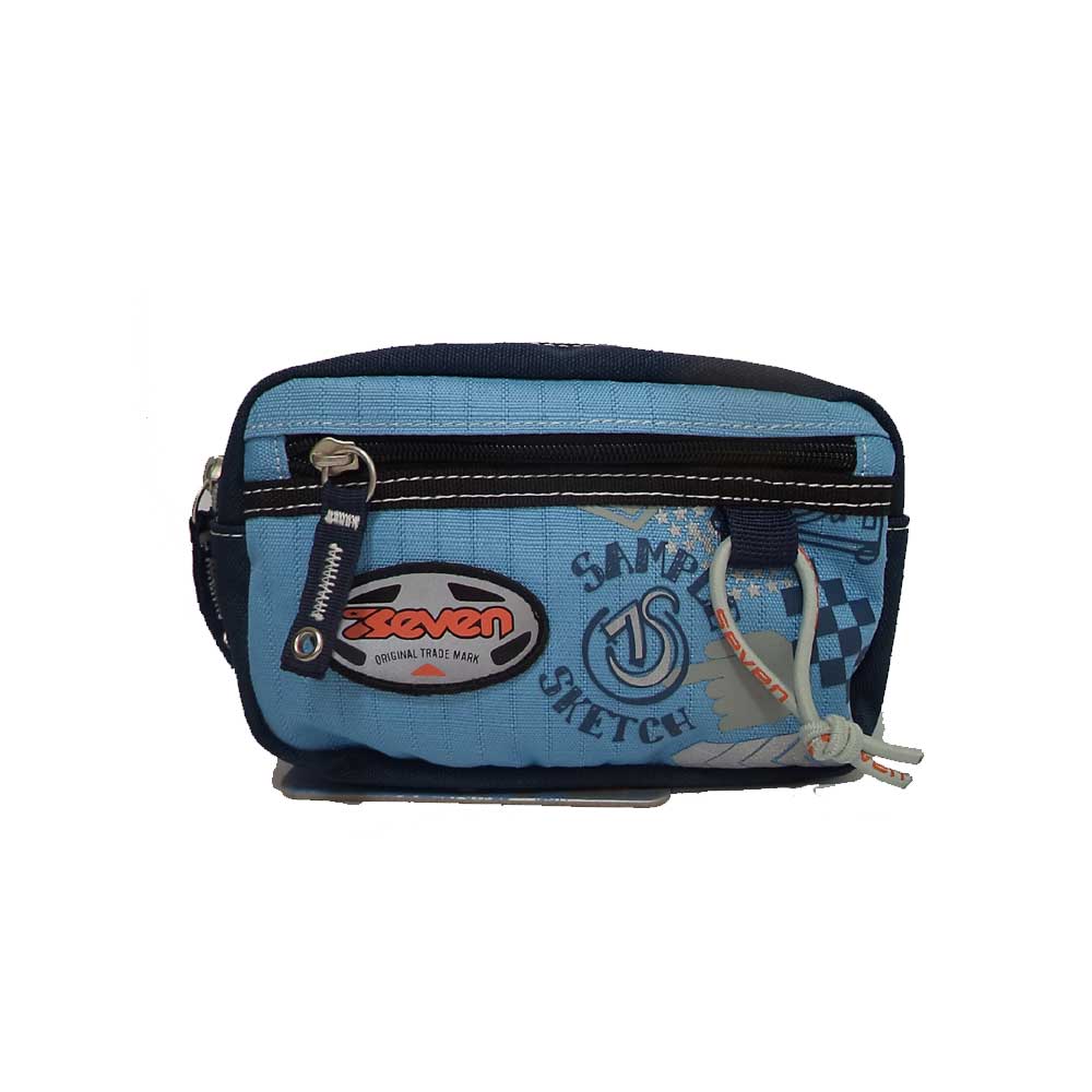 Bustina Seven doppia cerniera per poter dividere penne da colori. Colore celeste\blu.