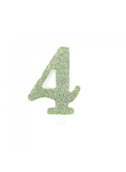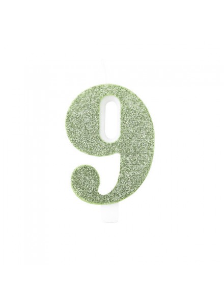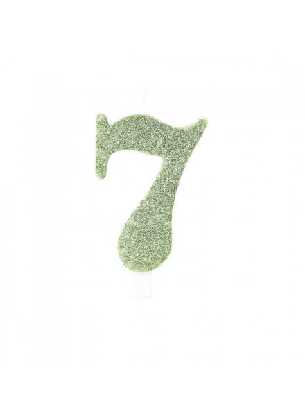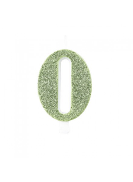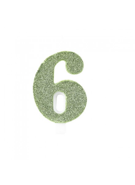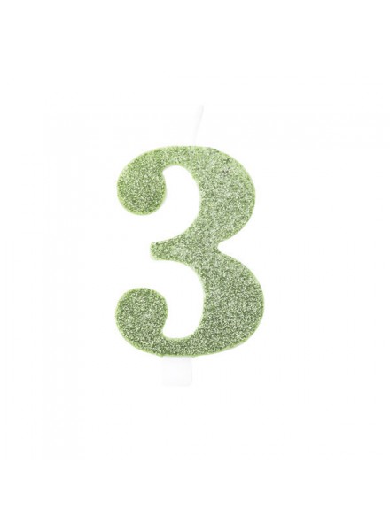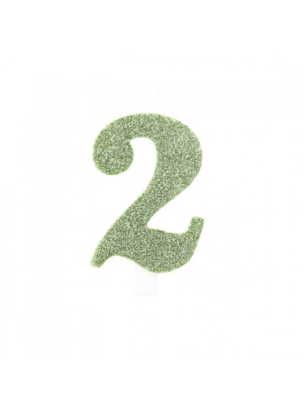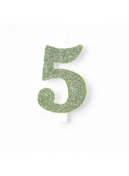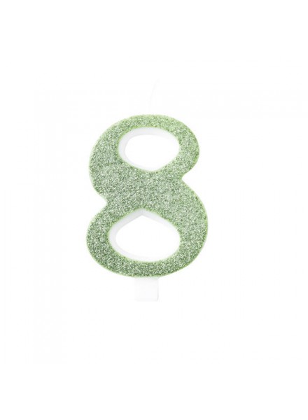 Candela per torta a forma di numero di colore verde salvia glitterata bio.