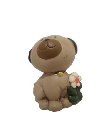 Molto carino questo cagnolino con fiore di lato e collare dorato per impreziosire le vostre case. Fornito di scatola regalo.