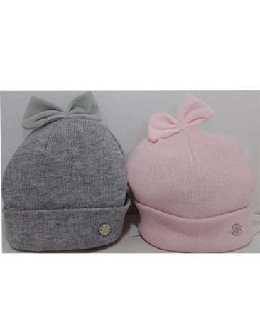 Cappello monocolore realizzato per il 30% in lana e 70% in acrilico con fiocco in velluto sopra. Se il fiocco non piace si può scucire e quindi si può eliminare.
