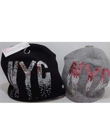 Cappello con scritta in paillettes realizzato per il 68% in poliestere, il 28% in cotone e il 4% in elastan.