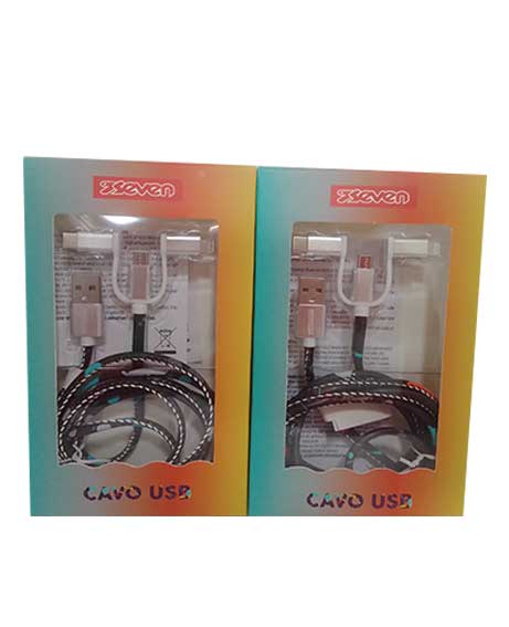 Cavetto di ricarica per cellulari e tablet universale Seven. Il cavetto è dotato di adattatori per dispositivi a ricarica micro USB – Type C o Lightning (Apple). La lunghezza del cavo è di 1,5 metri, comodo da usare e fast charge. Con questo cavetto è possibile ricaricare tutti i tipi di smartphone e tablet esistenti sul mercato.