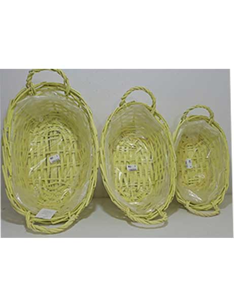 Cestino in vimini giallo disponibile in 3 dimensioni. Ideale per contenere pensierini fine festa o confettate o piccoli pensierini in occasione delle festività.