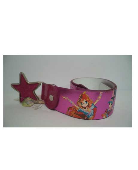 Cinta Winx con tutte le Winx disegnate sopra, chiusura ad incastro a forma di stella.