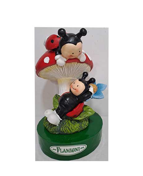 Coccinelle su fungo e fiore con ovetti di cioccolato al latte ripieni di crema alla nocciola FLAMIGNI.