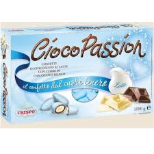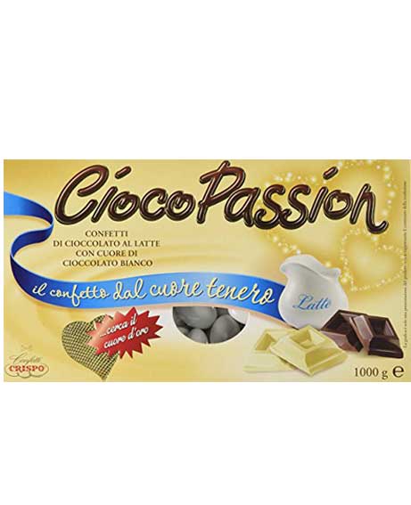 Confetti cioco passion ripieni di cioccolato al latte con cuore di cioccolato bianco.