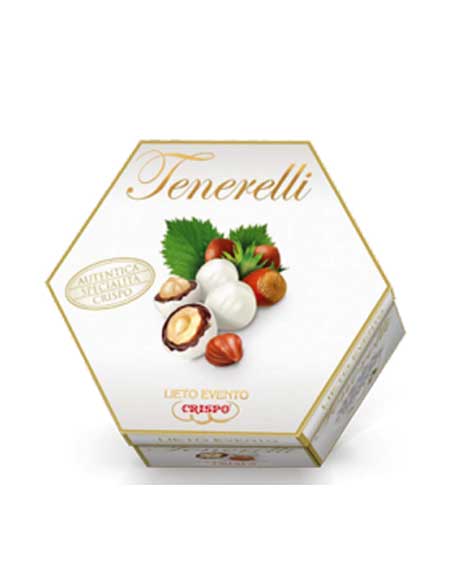 Confetti Crispo lieto evento tenerelli: le migliori nocciole tostate ricoperte di cioccolato al latte e confettate.