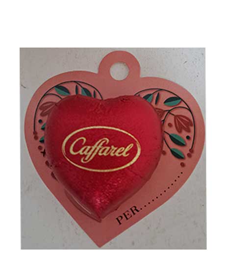 Cuore di cioccolato al latte CAFFAREL con incarto rosso. Da regalare perla festa di SAN VALENTINO come da tradizione.