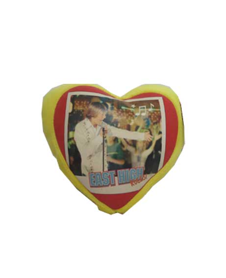 Cuscino a forma di cuore per Zac Efron l’indimenticabile di HIGH SCHOOL MUSICAL. Realizzato in peluche con la parte stampata in similpelle.