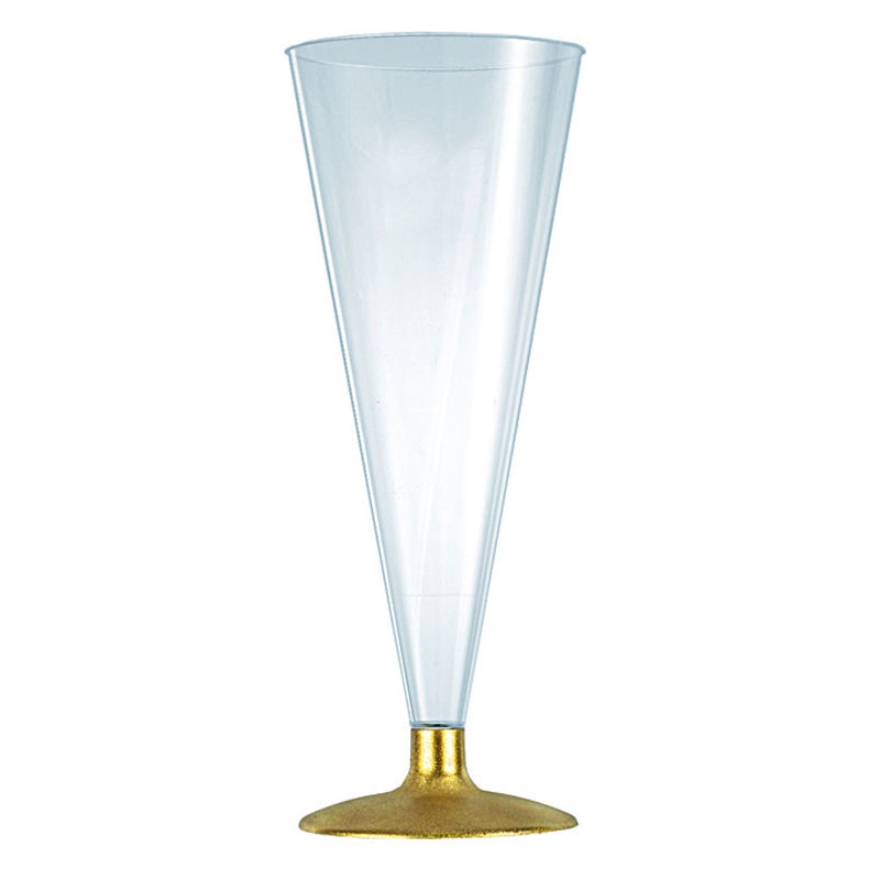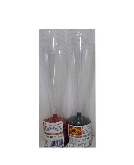 Flute champagne 170 cc realizzati in plastica trasparente con base colorata.