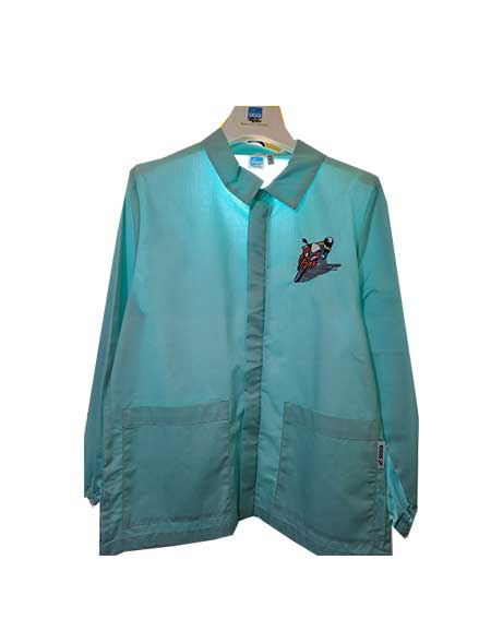 Grembiule modello casacca quindi corto per la scuola realizzato per il 65% in poliestere e il 35% in cotone con materiali certificati per garantire l’atossicità.