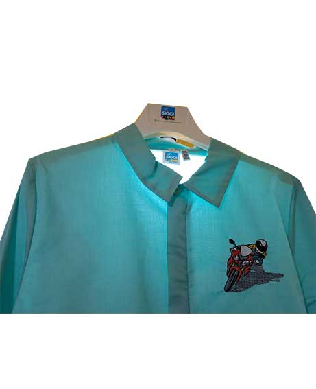 Molto carino il ricamo del motociclista in sella alla sua moto.