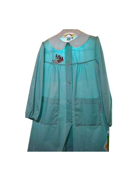 Grembiule verde per la scuola realizzato per il 65% in poliestere e il 35% in cotone con materiali certificati per garantire l’atossicità.