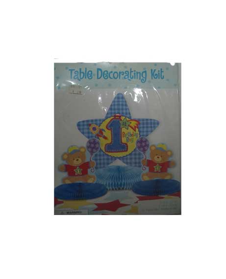 Realizzato in cartoncino, ideale per arricchire l’addobbo del tavolo della torta per il compleanno del tuo piccolo pargoletto. Composto da una stella col numero uno su base di carta celeste, due orsetti più piccoli sempre su base di carta, 12 stelle in tessuto da sparpagliare sul tavolo.