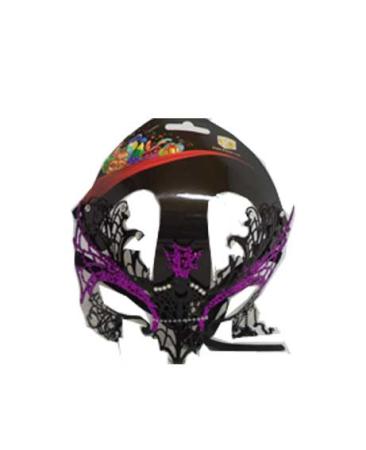 Realizzata in metallo quest’affascinante maschera nera da donna impreziosita da brillantini neutri e porporina fucsia.