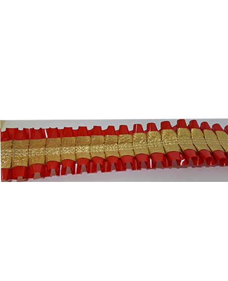 Nastro girotorta in PVC plissettato Rosso e simil tessuto Oro lungo 2 metri e alto 5 centimetri. Adatto ad ogni tipo di torta sia con panna che con pasta di zucchero.