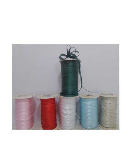 Nastro di raso da usare per chiusura di pacchetti o bomboniere. La cosa favolosa è che puoi semplicemente tirare un filo all’interno e formare una coccarda perfetta.