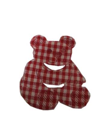 Orsetto decorativo realizzato in tessuto quadrettato con due fessure per far passare del nastro e legarlo sui lavori creati.