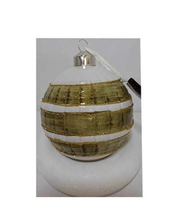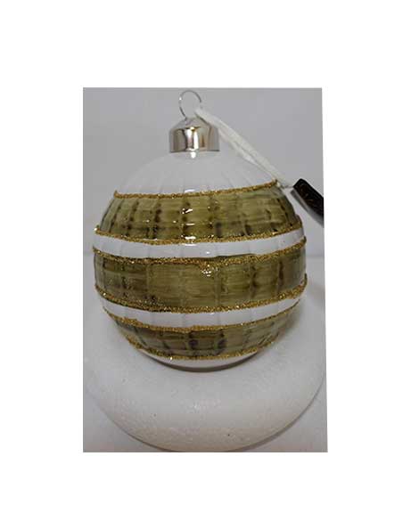 Pallina natalizia lucida bianco/verde.  Ghirlanda per appoggiarla non inclusa.