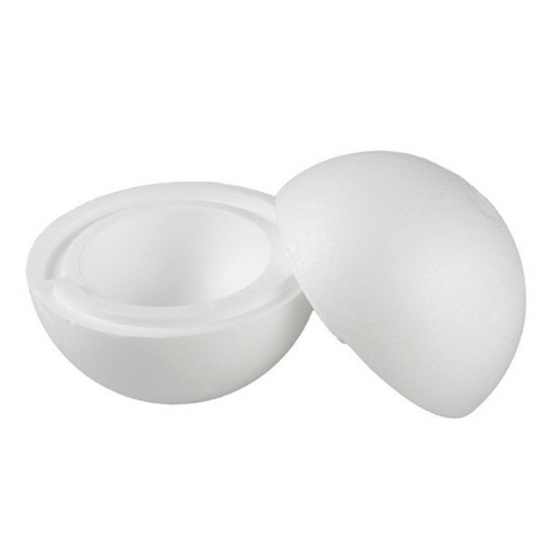 Pallina di polistirolo divisa in due facile da montare grazie all’incastro.