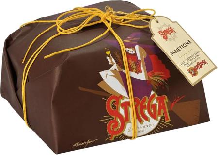 Panettone con gocce di cioccolato farcito con crema al cacao al liquore STREGA.