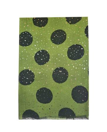 Pashmina donna verde a pois con schizzi dorati realizzata per il 65% in polietere e il 35% in viscosa