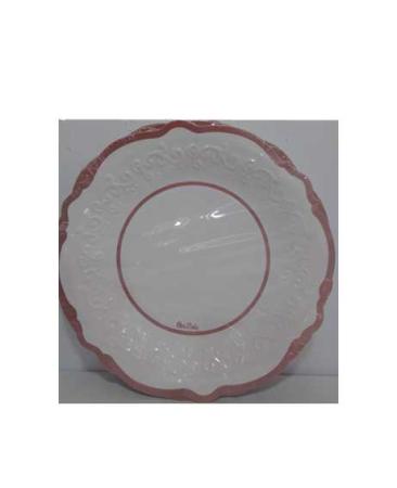 Piatto realizzato in cartoncino biodegradabile di colore bianco con i bordi ROSA GOLD.