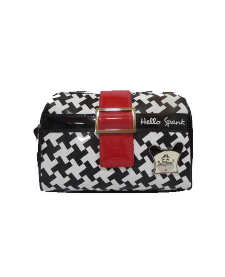 Pochette Hello Spank Hoy Collection in ecopelle e vernice, di colore rossa, bianca e nera.