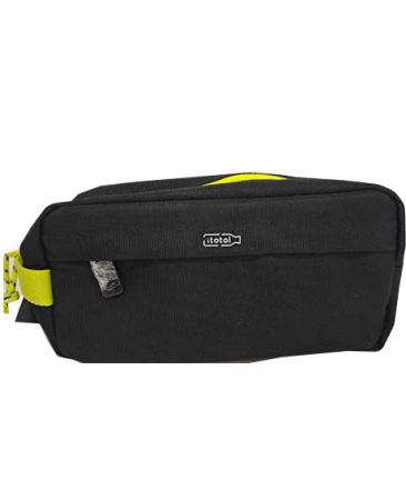 Pochette portaoggetti NERA con manico I-TOTAL con chiusura a zip gialla coordinata al manico. Sul davanti un’ulteriore tasca sempre con chiusura a zip per separare gli oggetti.