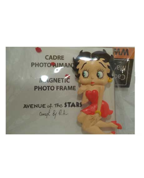 Simpatico portafoto con Betty Boop che manda bacini. Dietro ha una calamita potente da poterlo mettere attaccato alle parti metalliche che desiderate.