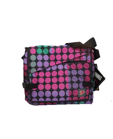 Postina Seven Reversibile realizzata in tessuto poliestere.Chiusura con due moschettoni laterali. Fornito di cerniere sulla pattina per riporre oggetti piccoli. Da notare la fantasia a pois da un lato e color fucsia dall’altro lato.